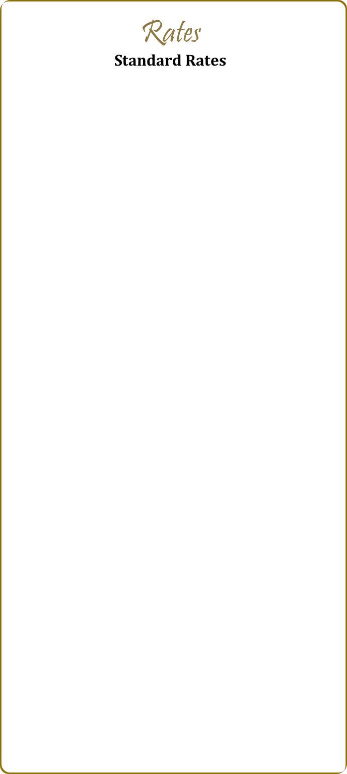 Room Type Standard Rate Suites - Sharing R   1550 p/p R   2300 p/p Suites - Single R   5200/ unit Presidential Room Rate RATES INCLUDE: Accommodation Breakfast Secure Parking RATES EXCLUDE: Gratuities, Laundry, Alcoholic  and Non-Alcoholic beverages,  Wellness Spa treatments  and other extra activities NOTES: There will be a 50% supplement  will be levied on Special  rates for single guests.  Children under the age of 12  are permitted at the discretion  of Witwater Guest  House Management and Central  reservations office Accommodation tariffs are quoted in South African rand  (ZAR) and are subject to  change without prior notification.All tariffs are  inclusive of 15%Value Added Tax (VAT). Rates are valid from 1 July 2024 - 28 Feb 2025 Presidential Suite - fit for a king Max 2 Adults Special Rates Please enquire or  book online for Special rates Group bookings Functions Conferences Corporate Rates
